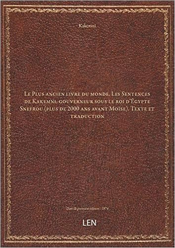 Amazon Fr Le Plus Ancien Livre Du Monde Les Sentences De Kakemni Gouverneur Sous Le Roi D Egypte Snefrou Pl Kakemni Livres
